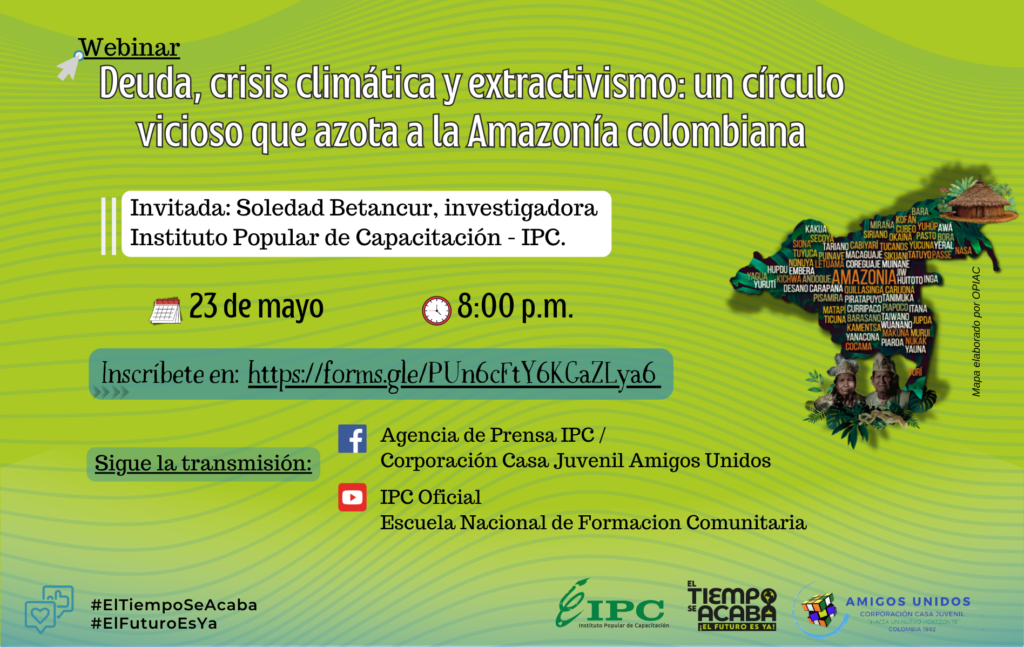 En medio de la actual crisis ambiental en la Amazonía, Soledad Betancur, investigadora del Instituto Popular de Capacitación – IPC, plantea una hipótesis que reúne la deuda externa, el extractivismo y la crisis climática en la Amazonía, y demuestra la necesidad de transformar el modelo de endeudamiento y la transición energética de la mano de las comunidades.