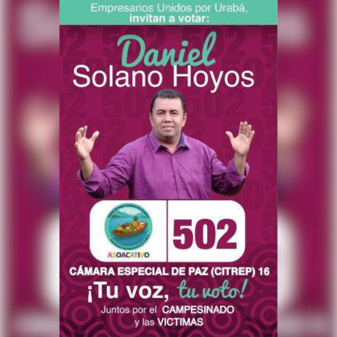 En 2022 se presentó a las curules de paz avalado por la misma asociación que hoy lo hace. Para ese año, obtuvo 1901 votos de los 3091 totales de la asociación.