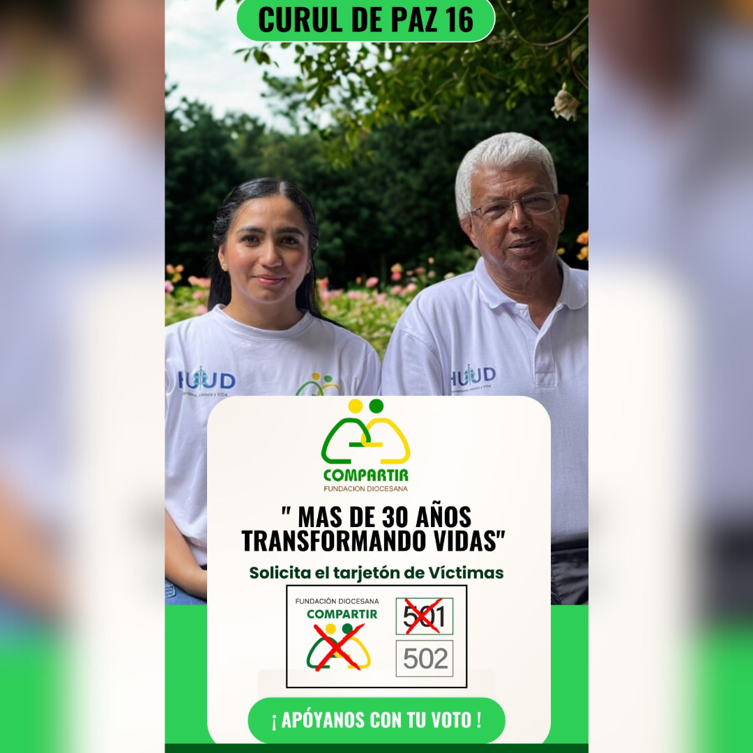 Su acercamiento a las curules de paz se dio por iniciativa de la hermana Carolina Agudelo, fundadora de la Fundación Diocesana Compartir. “Realmente yo desconocía mucho todo este tema de la curul de paz, pero con la hermana es que me vinculo y fue quien me impulsó, para poder ser una voz para las víctimas, un parlante”, explica Carvajal.